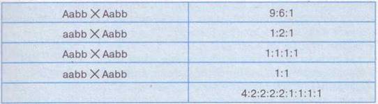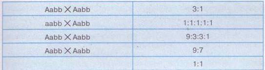 а) о взаимодействии неаллельных генов; б) о неполном доминировании; в) о летальности одной из гомозигот; г) о сверхдоминировании.