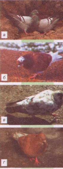 Рис. 64. Голубь «дикого типа» (а) и разные мутантные фенотипы (б—г).