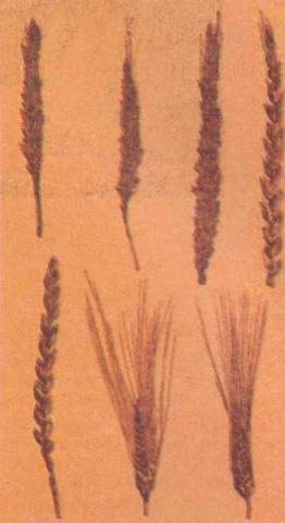 Рис. 75. Разные виды дикорастущей пшеницы отличаются друг от друга формой колосьев.