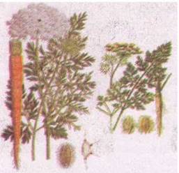 Рис. 77. Диплоидная дикая (справа) и полиплоидная культурная (слева) формы моркови.