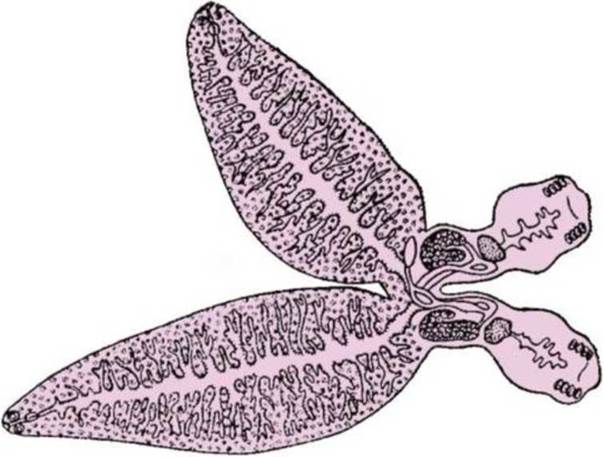 Рис. 18.5. Diplozoon paradoxum - два организма, сросшиеся органами половой системы