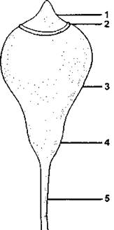 1 - крышечка: 2 - колечко; 3 - урночка: 4 - шейка; 5 - ножка (по И. И. Абрамову и coaвт.)