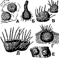 Рис. 370. Типы ловушек хищных грибов: