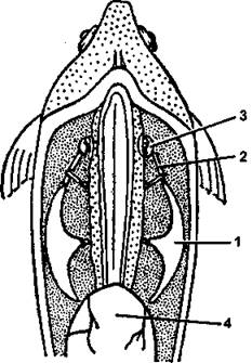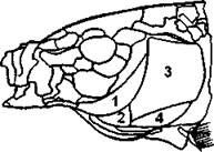Рис. 270. Кости жаберной крышки: 1 - предкрышка; 2 - межкрышка; 3 - крышка; 4 – подкрышка (по С. И. Левушкину и совет.)