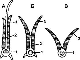 А - ппанктоноядной; Б - бентосоядной; В - хищной: 1 - жаберные дуги; 2 - жаберные тычинки: 3 - жаберные лепестки (по И. М. Анисимовой и соавт., с изменениями и дополнениями)
