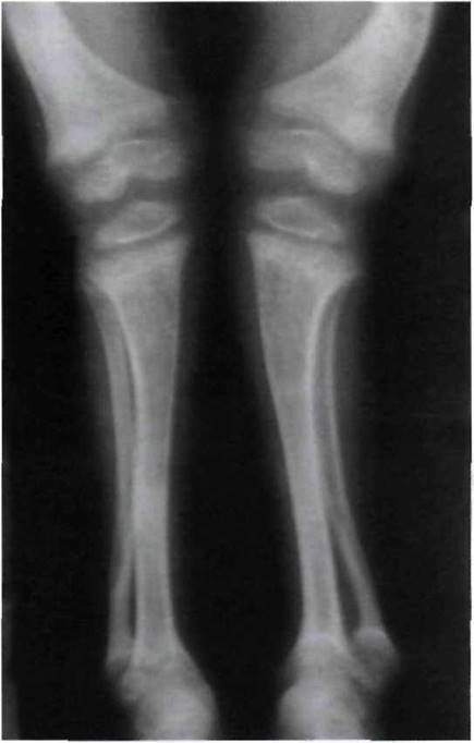 Рис. 11-2. Рентгенологические проявления рахита в период разгара.
