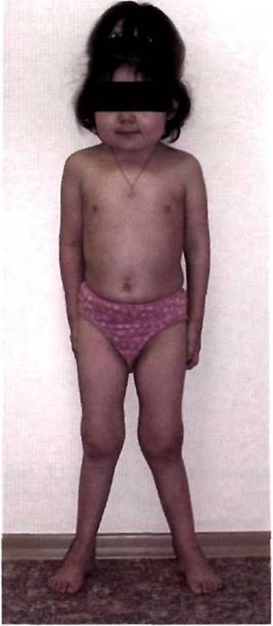 Рис. 21-1. Общий вид больной при ювенильном ревматоидном артрите.
