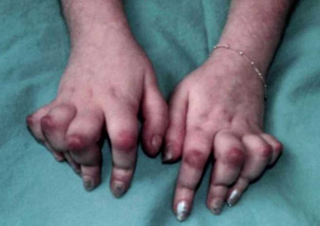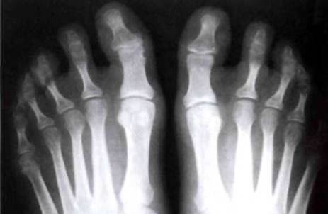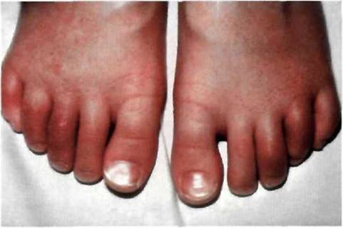 Рис. 22-4. Сосискообразная деформация пальцев стоп.