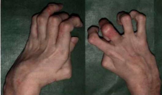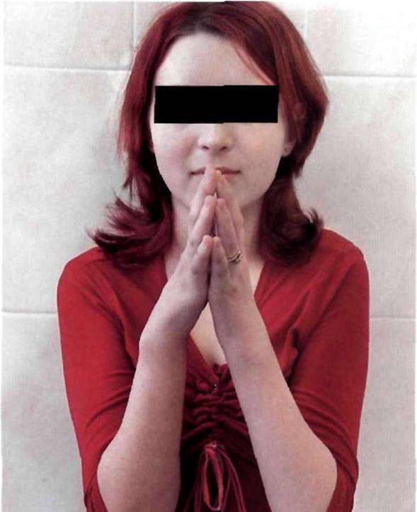 Рис. 21-9. Значительное ограничение движений в лучезапястных суставах.