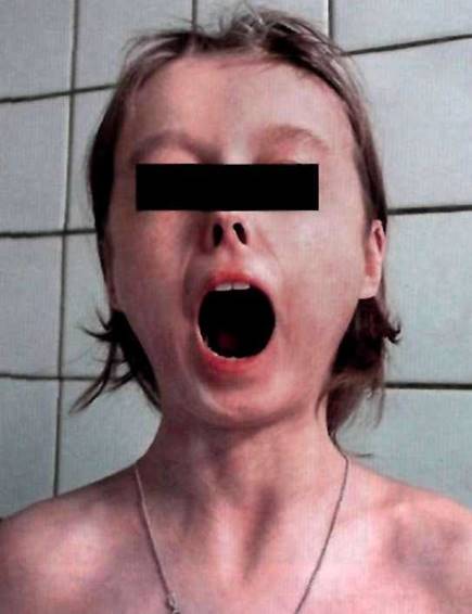 Рис. 28-1. Кисетный рот при системной склеродермии.